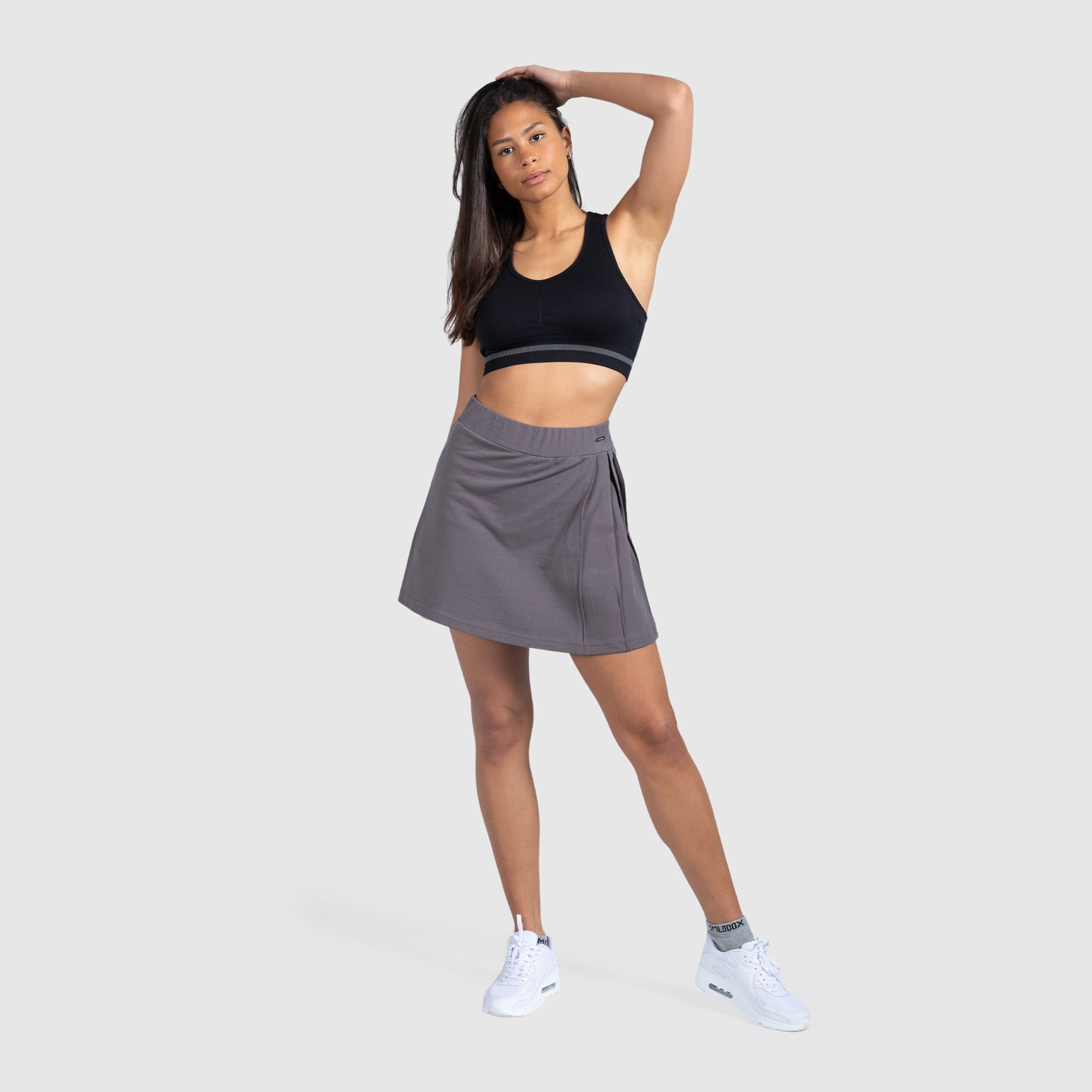 This skirt is the perfect way to show off your feminine side. The M metal label and the box pleats on the side of the skirt ensure a cool look. Thanks to the short leggings, which are located under the skirt and adapt perfectly to the body, you are perfectly protected and don't need to worry during sport.